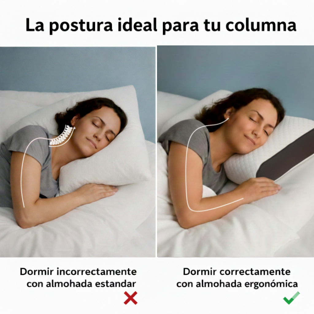 Tu almohada actual está forzando tus cervicales y robándote energía cada mañana. Cambia tu descanso esta noche y despierta sin dolor, como hace tiempo no lo sientes.